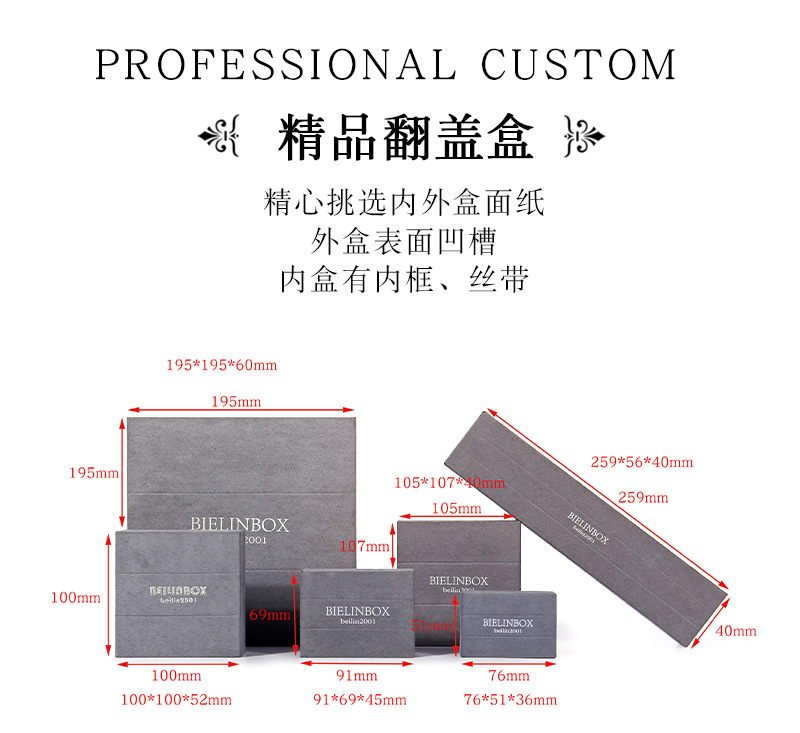 冠琳包装提供专业奢侈品包装盒定做方案,打造优质奢侈品包装盒品牌,提供专业良好定制服务,定制奢侈品盒能为客户提高品牌影响力,为客户品牌产品增值!奢侈品珠宝盒细致做工,品质QC全检,材料认证,此款精心挑选内外盒面纸,外盒表面凹槽,内盒有内框、丝带。同时可定做配套纸袋布袋生产 |