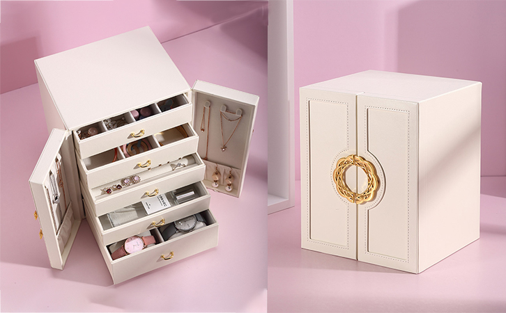 产品多样化,不只是局限珠宝首饰盒,如有其它盒子想要定制,均可根据客户的目标价格,定制设计调整logo、面纸、内衬、规格结构等
