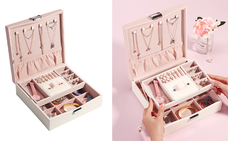 产品多样化,不只是局限珠宝首饰盒,如有其它盒子想要定制,均可根据客户的目标价格,定制设计调整logo、面纸、内衬、规格结构等