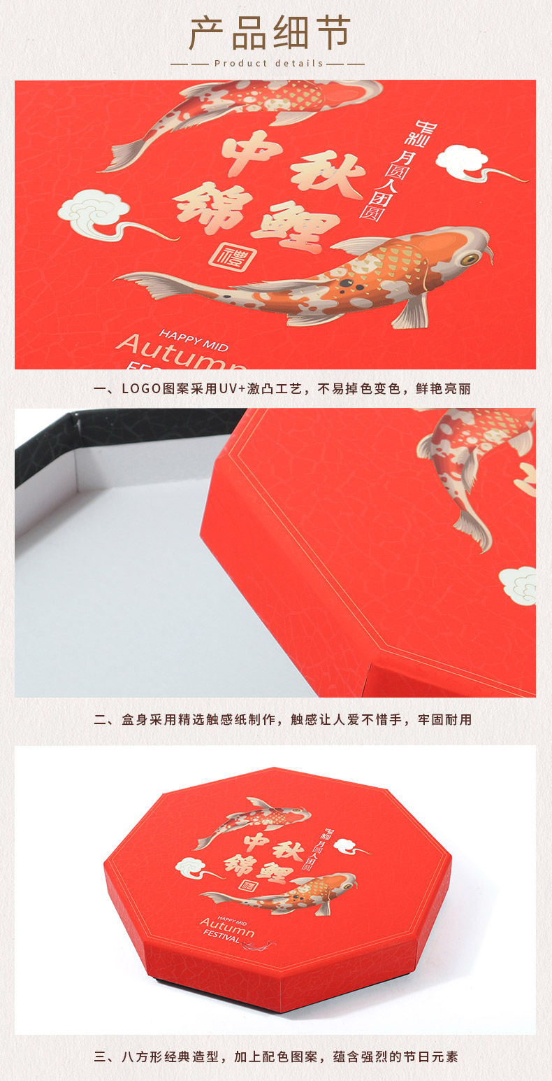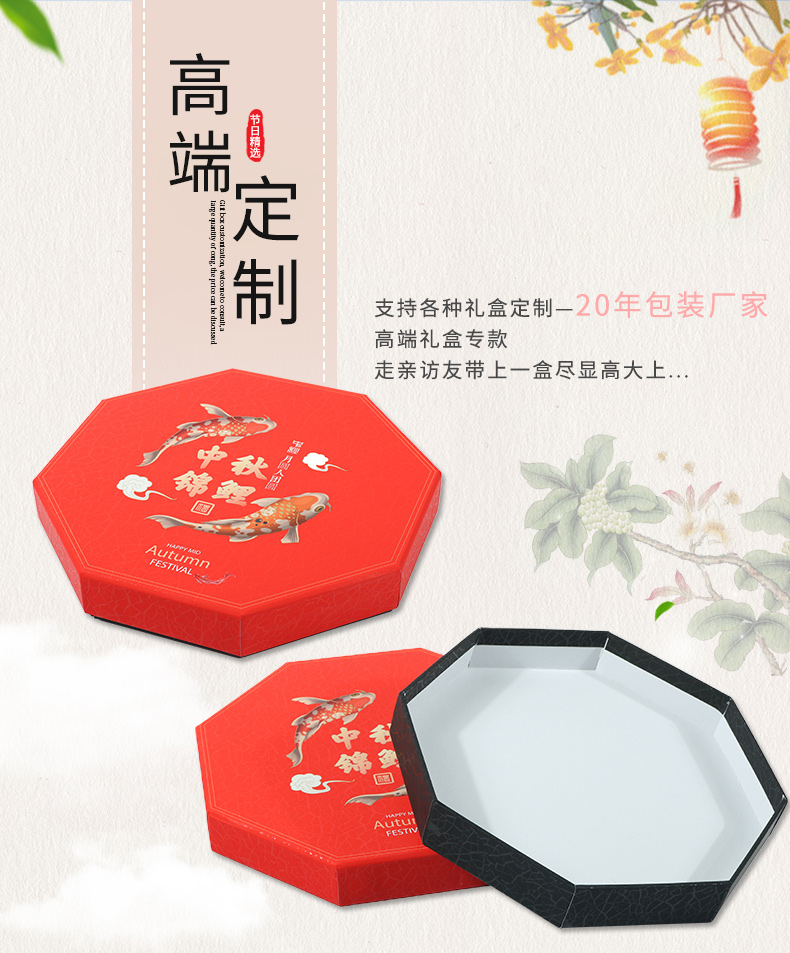 冠琳中秋礼盒定做厂家,高档精美UV+激凸工艺,呈现中秋设计,融入中国风,喜庆喜人,非常适合节日送礼,送礼大气有面。冠琳厂家可根据您的要求一站式定制生产服务。