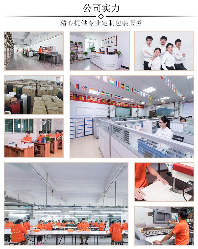强大的生产实力满足您的大需求 ● 占地18000m²大厂房,执行ERP、6S管理模式,规范生产管理 ● 配置13条包装盒生产线,机器部24小时生产制造,手工部多年熟手手工用心精细制作,全面提高生产效率。 ● 月产500万套天地盖包装盒,高效率,大产能,满足您的超大订单量需求。